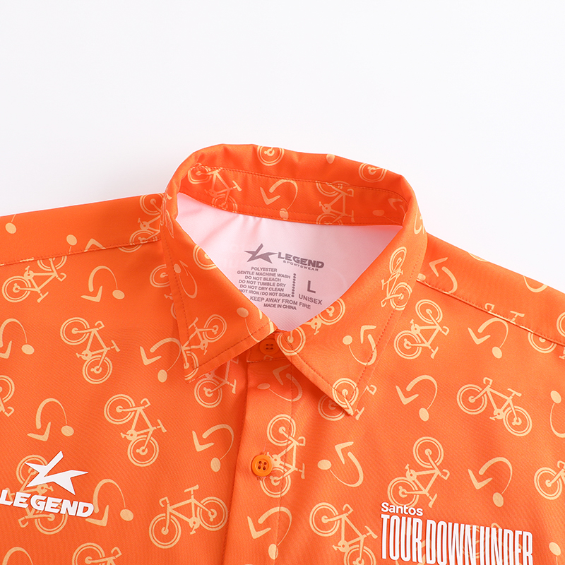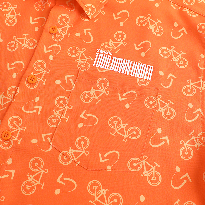 This lightweight sublimated woven shirt combines comfort, breathability, and a refined fit — perfect for fans and cycling enthusiasts. Featuring a bold cycling allover print and a high-density silicone Tour Down Under logo, it’s the ideal blend of performance and lifestyle.