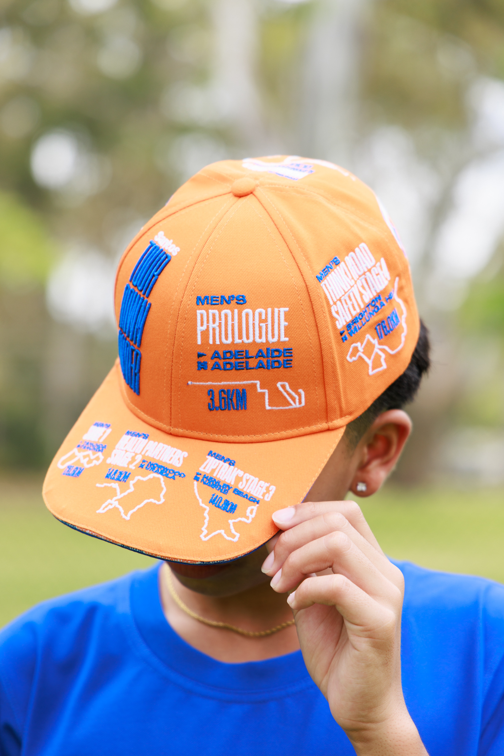 Crafted from durable cotton twill, this cap features detailed 3D embroidery of each 2026 stage route, celebrating every climb and sprint of Australia’s greatest cycling race. With a structured fit and curved peak, it’s the perfect keepsake for riders and fans alike.